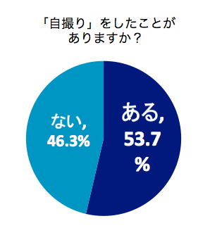 「自撮りをしたことがありますか?」という質問に関しては、半数以上の女性が「ある」(53.7%)と回答し、およそ2人に1人の女性が自撮り経験があることが分かりました!