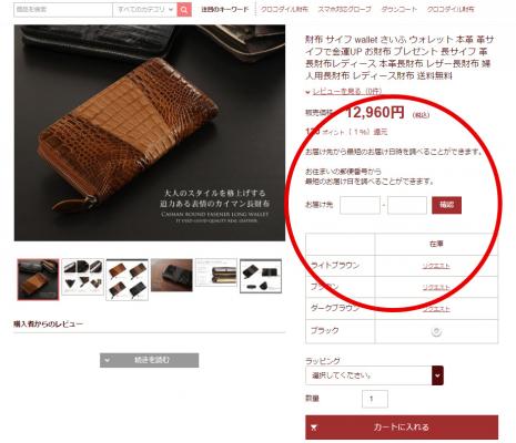 商品ページには、新システム「お届けナビ」を採用。