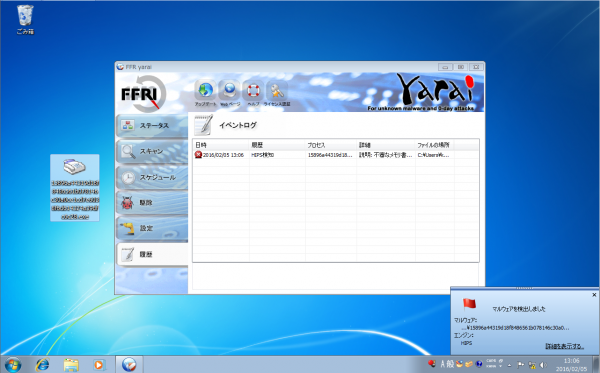 Windows 7 × FFRI プロアクティブ セキュリティ 1.1.395.2(2016年1月リリース)