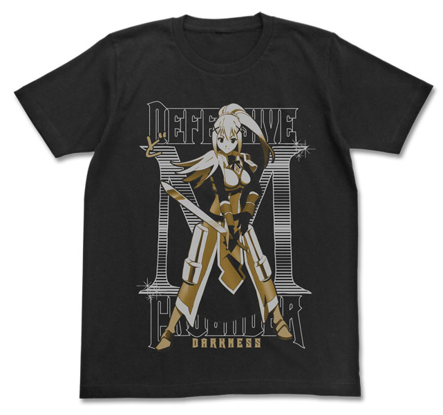 さらに!どんな攻撃でも受けきるクルセイダーの「ダクネス」が、あなたの盾になってくれそうなTシャツ!このTシャツを着ていればどんな攻撃でも積極的に受けにいきたくなる!?そんな気分になるTシャツだぞ!