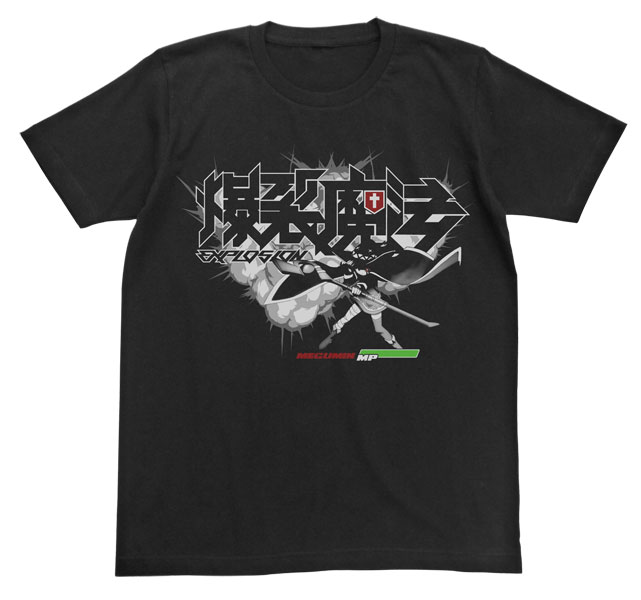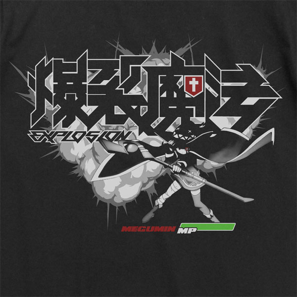 紅魔族随一の魔法使い めぐみんの代名詞ともいえる「爆裂魔法」の文字をデザインしたTシャツ。背面にはMPを消費し身動きが取れらくなってしまった めぐみんの姿が!遊び心溢れるデザインのTシャツだ!
