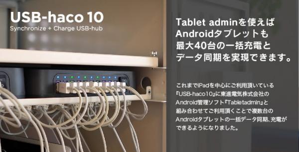 タブレット端末を複数台利用する企業や教育機関(小学校・中学校・高校・専門学校・大学)、ペーパーレス会議など、多数のタブレット端末を充電/データ同期するシーンで活躍します。
