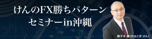 FXトレードにおける「10の勝ちパターン」を考案した鹿子木健(かなこぎ けん)を講師として、『けんのFX勝ちパターンセミナー』を4月16日に沖縄で開催します。