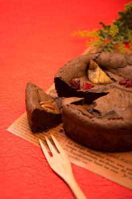 ツバメカフェ濃厚チョコレートケーキは、小麦粉を使用せずチョコレートとバター、卵だけを使用して基本に忠実、丁寧に時間をかけて作り上げたチョコレートケーキにドライフルーツをあしらいました。