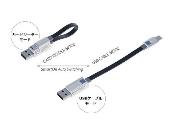 折りたたむだけでケーブル機能とカードリーダー機能が自動切替される独自技術「SmartOn自動スイッチ」を搭載しています。