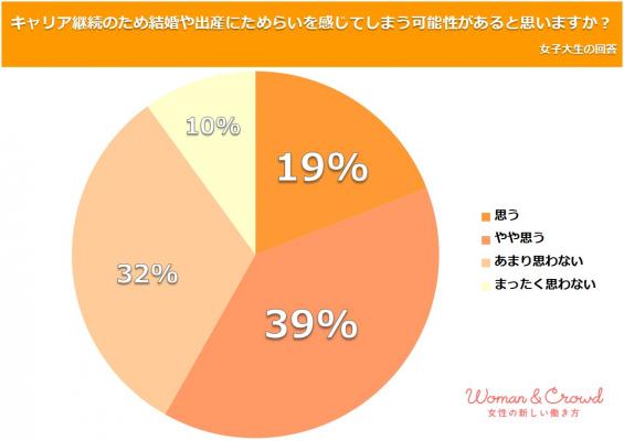58%の女子大生が「キャリア継続のため結婚や出産に、ためらいを感じてしまう可能性がある」と回答