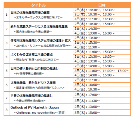 また、PV EXPO 専門技術セミナー【PV-10】太陽光発電市場における新たな展開(有料)においては、弊社研究員が「世界市場の現状と見通し―今後の成長市場」と題し講演を行います。