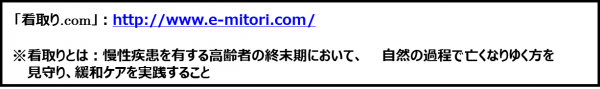 株式会社鎌倉新書(本社:東京都中央区、代表取締役社長:清水祐孝、以下当社)は看取りに特化した情報配信サイト『看取り.com』(http://www.e-mitori.com/)を2016年4月1日に公開いたしました。