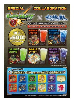 「モンスターストライク」のキャラクターをイメージしたオリジナルコラボドリンク(500円税込)が登場!