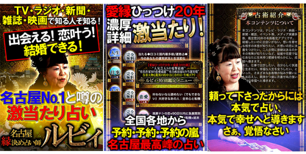 ・アプリ名称:【当たる結婚占い】名古屋のNO.1恋縁占い師◆ルビィ