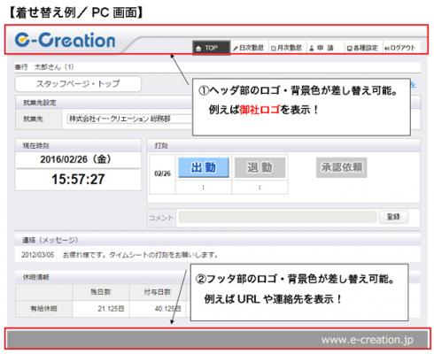 企業向けペーパーレス化ソリューションを提供する株式会社イー・クリエーション(本社:東京都台東区、代表取締役:伏見 剛)は、PC/携帯/スマートフォンに対応した勤怠管理システム「e-naviタイムシート」の新サービスとして、「WEB着せ替えサービス」をリリースしました。