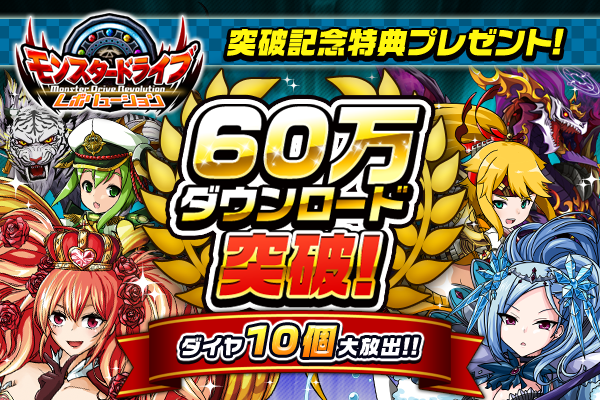 ダウンロード数60万件突破を記念し、3月2日(水) 17:00までにチュートリアルを突破したユーザーの方全員に記念特典をプレゼントいたします。