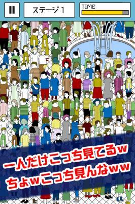 制限時間内に一人だけこっちを見てる(正面を向いてる)人を見つけ、タップします。
