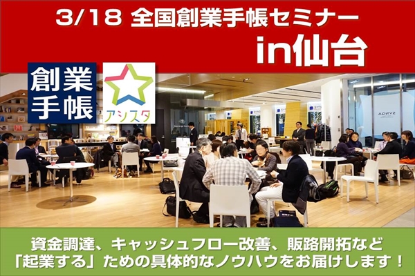 『創業手帳』を発行するビズシード株式会社は、2016年3月18日(金)、創業者向けの無料セミナーを仙台市の起業相談窓口「仙台市起業支援センター“アシ☆スタ”」と共催で開催します。