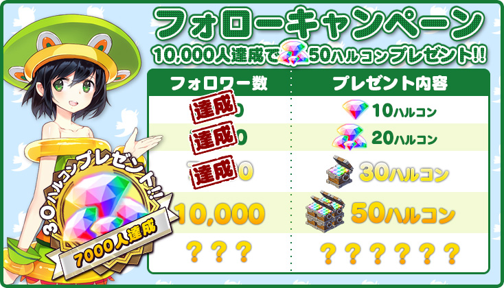 ハルコン20個(フォロワー5000人突破) → ハルコン30個(フォロワー7000人突破)