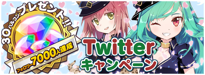 公式アカウント(@info_trickster)のフォロー数、公式ツイートのリツイート数に応じて、ハルコンやゲルダをプレゼントします。