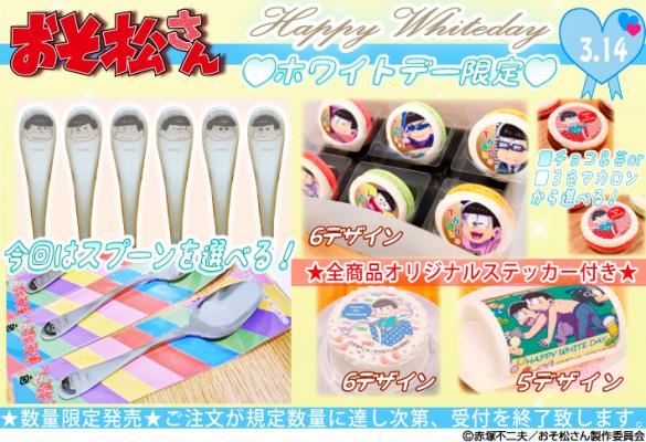 今回はホワイトデー特別仕様として、6つ子それぞれの顔が入った特製スプーン(全6種)が登場。