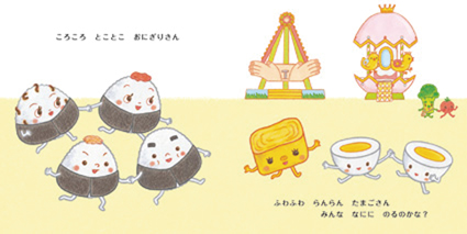 おにぎりさんに たまごさんに おにくさんに フルーツさん みんなで そろって どこいくの?