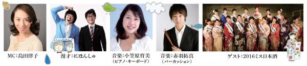 遊び: 音楽(キーボード+パーカッション、和太鼓)、漫才師「にほんしゅ」、2016 ミス日本酒