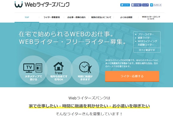 新聞社、テレビ局など大手メディアの運営するWEBサービスで記事執筆できます。多数運営する自社メディアの直案件がメインです。在宅で仕事したい、時間に融通の効く仕事がしたい、空いた時間に少しずつ仕事をしてお小遣いを稼ぎたい…Webライターズバンクでは、そういったかたちでのお仕事を希望される経験者のライターの方を募集しています。