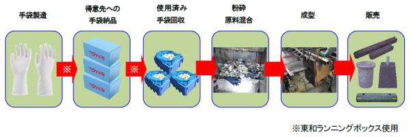 ●使用済み手袋の回収、再利用による資源の有効活用、及び各企業様のゼロ・エミッション活動に貢献することによる、循環型経済社会実現へ向けた取り組み。