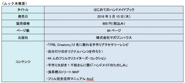 フリマアプリ「フリル」は2012年7月より、日本初のフリマアプリとして誕生しました。不用品の取引を中心に利用者が増えるなか、近年では手作り作品を出品する作家も急増していました。現在では15,000名以上の作家がフリル内で活躍しており、なかでも特に活躍されている作家をフリル公認の作家「FRIL Creators」として認定しています。同本は人気作品の作り方や購入者を引きつけるためのポイントについて「FRIL Creators」が教えてくれる本です。