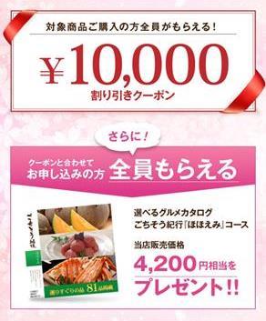 方皆さまに、1万円をキャッシュバック!!さらに、選べるグルメカタログ