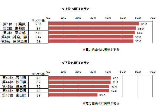 1.都道府県別!電力自由化興味度ランキング、第1位は千葉県・第47位は富山県に!関東エリアで興味の高さが集中