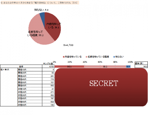今回は実施したいくつもの調査項目から、第1弾として電力自由化の「認知」と「興味」についてピックアップして紹介したいと思います。