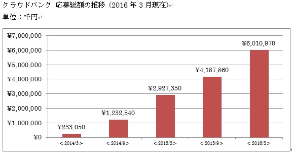 日本クラウド証券株式会社(本社:東京都港区、代表取締役社長:大前和徳、以下「日本クラウド証券」)が運営する「クラウドバンク」が2016年3月14日に応募総額60億円を突破いたしました。