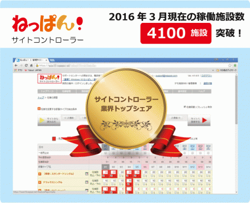 「ねっぱん!」は2016年2月末時点で4100軒以上の施設で稼働している宿泊施設向けのサービスで、複数の宿泊予約サイトの在庫・料金・予約情報を一括管理できる無料のクラウド型サイトコントローラーです。宿泊施設が各サイトの管理画面を開いて部屋と料金の登録にかけている労力を少しでも軽減することで、より魅力的なプラン作成など集客のために割く時間を増やすことが可能となります。