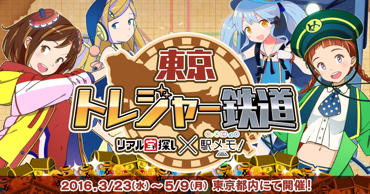 株式会社モバイルファクトリー(本社:東京都品川区、代表取締役:宮嶌裕二)とRUSH JAPAN株式会社(本社:東京都江東区、代表取締役:齊藤多可志)は、2016年3月23日(水)から東京都内の駅に隠された100個のお宝を探し出すリアル宝探しイベント「リアル宝探し×駅メモ! 東京トレジャー鉄道 100万のお宝を探して!」を、位置情報連動型ゲーム「ステーションメモリーズ!(略称:駅メモ!)」にて開催します。
