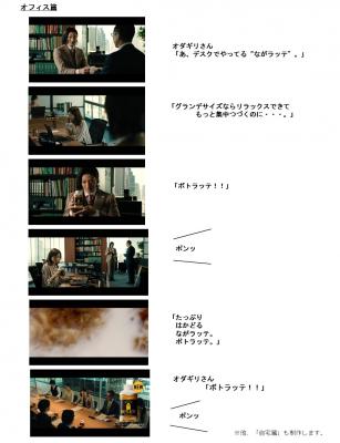 CMキャストにはオダギリジョーさんを起用。オダギリさんが仕事や勉強に集中できずに困っている人を見つけると、おもむろに『BOTTLATTE』を取り出し、「ボトラッテ!」と念じます。すると、超能力で『BOTTLATTE』がその人の手元にワープする、というストーリーになっています。リラックスした集中時間を持続させるラテで、デスクワーク中の女性をサポートする「オフィス篇」、家で勉強中の女性をサポートする「自宅篇」を制作し、様々なターゲット層の方へアプローチします。