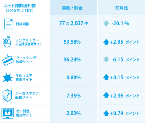 BBソフトサービス(BBSS)の「Internet SagiWallTM(インターネットサギウォール)」で検知したデータを基にした、2016年2月度のインターネット詐欺リポートです。