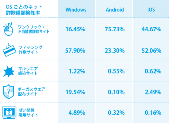 OSごとのネット詐欺種類検知率