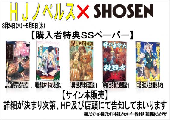 期間中、HJノベルスをご購入の方へ、一冊につき一枚、SSペーパーの配付を行います。