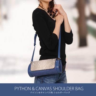 商品名:パイソン&キャンバス地 ショルダーバッグ(No.06000704)