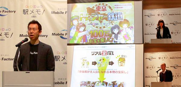 株式会社モバイルファクトリー(本社:東京都品川区、代表取締役:宮嶌裕二)とRUSH JAPAN株式会社(本社:東京都江東区、代表取締役:齊藤多可志)は、2016年3月23日(水)からリアル宝探しイベント「リアル宝探し×駅メモ! 東京トレジャー鉄道 100万のお宝を探して!」を位置情報連動型ゲーム「ステーションメモリーズ!(略称:駅メモ!)にて開始しました。初日には「駅メモ!」ファンを招待した開催発表会も行われ、特別宣伝大使として柳ゆり菜さんに「でんこ」のコスプレ姿で登場していただきました。