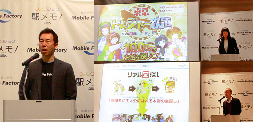 2016年3月23日(水)、「ステーションメモリーズ!」と「タカラッシュ!」は、東京都内約100箇所の駅を対象にしたリアル宝探しイベント、「リアル宝探し×駅メモ! 東京トレジャー鉄道 100万のお宝を探して!」を開始しました。