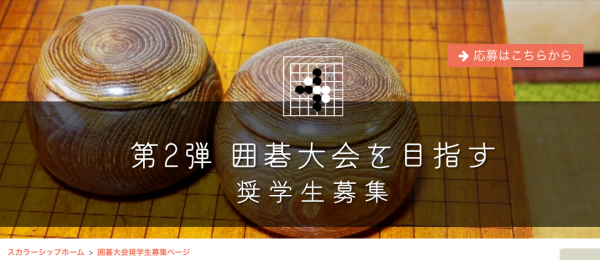 ▼「第2弾 囲碁の大会を目指す奨学生募集」ページ