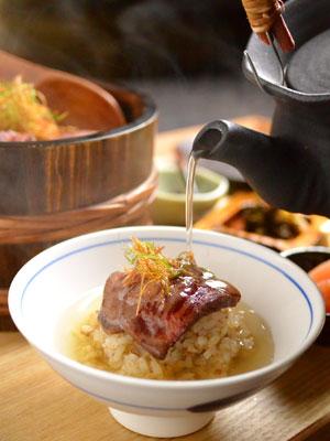 お茶漬けの出汁は、牛肉から丁寧にとった黄金色の出汁に、香味野菜、
