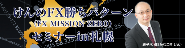FXトレードにおける「10の勝ちパターン(FX MISSION ZERO)」を考案した鹿子木健(かなこぎ けん)を講師として、『けんのFX勝ちパターン(FX MISSION ZERO)セミナー』を5月28日に札幌で開催します。