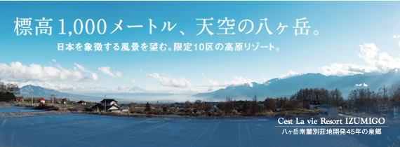 「もっと身近にリゾートを」をコーポレートメッセージに「不動産事業」、「リゾートホテルの運営事業」、「会員制リゾート事業」を手掛ける株式会社セラヴィリゾート泉郷(本社:東京都豊島区、代表取締役社長:江間英夫)は、平成28年4月2日に山梨県より新規分譲地「八ヶ岳アルペンコート」新規分譲地の販売を開始致します。