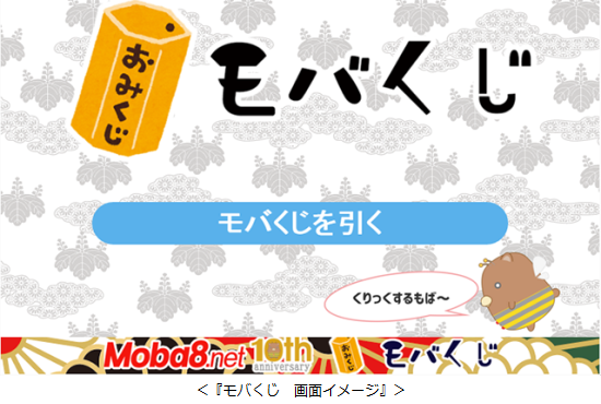 1日1回引けるおみくじとともに本日のおすすめプログラムを表示する「Moba8.netおみくじエクステンション『モバくじ』」は、おみくじ好きな日本人の心をくすぐり、ゲーミフィケーションによる利用率アップを狙ったエンタメツールです。ブラウザ(Google Chrome)で遊びながら、普段目にしない広告と出会っていただく目的の新しい広告キュレーションサービスとして提供します。