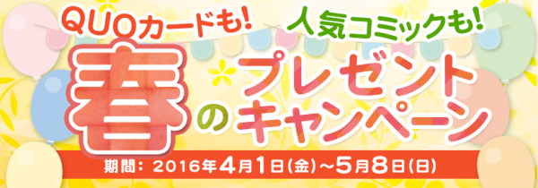 ◇キャンペーン名称:QUOカードも人気コミックも!春のプレゼントキャンペーン!