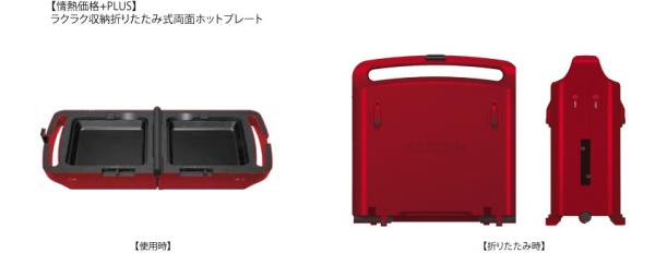 【情熱価格+PULS】は元祖プライベートブランド【情熱価格】のお得さに、「付加価値」が加わった商品群として誕生した新ブランドラインです。この度発売する「ラクラク収納折りたたみ式両面ホットプレート」は、一般的な1枚型プレートを2枚に分けることで、実用性と収納性の向上を実現しています。