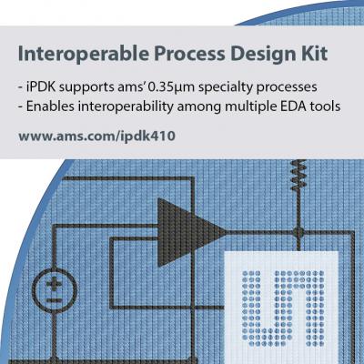 amsの新しいiPDKバージョン4.10は、C35 (CMOS)、S35 (SiGe-BiCMOS)、H35 (高耐圧CMOS)など高機能の0.35umプロセス技術をサポートしています。amsのiPDKは、シリコンで検証されたデジタル、アナログおよびRFライブラリ素子や様々なゲート酸化膜の厚さを持つ低耐圧(3.3Vおよび5.0V)および高耐圧(10V, 20V, 50V, 120V)デバイスに完全に対応します。面積を最適化した高密度デジタルライブラリや、3.3Vおよび5Vはもちろん、幅広い選択が可能なアナログ・デジタルIOライブラリが全0.35μmプロセスファミリにて利用可能です。広範囲なシミュレーターに対応した完全にキャラクタライズされたシミュレーションモデルや、CalibreやAssura両ツールに対応した抽出・検証実行環境、および自動セルレイアウト生成(PyCells)が含まれています。これにより、製品開発者は自らが選んだEDAベンダーツールを使って「初めから成功する」設計を容易にするプラグアンドプレイのツールセットを利用できます。