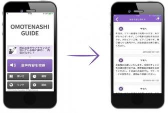 ヤマハの「おもてなしガイド」は、アナウンスやナレーション、ショーやアトラクションのセリフなどをトリガーに、音声内容を専用のスマートフォンアプリに日本語を含む各言語でリアルタイム表示するシステムで、昨年より交通機関や商業施設での実証実験が始まっています。