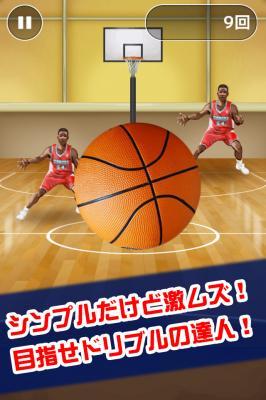 指でバスケットボールを開始場所を決め、指を離してバスケットボールをタップしてドリブルをします。