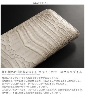 ヒマラヤクロコダイルはナイルクロコダイルの革を丁寧になめし、染色や脱色工程を一切行わずに使用しています。このホワイトカラーはナイルクロコダイルが持つ、天然の色合いであるため、傷が無く、選び抜かれた本当に綺麗な個体のみが、